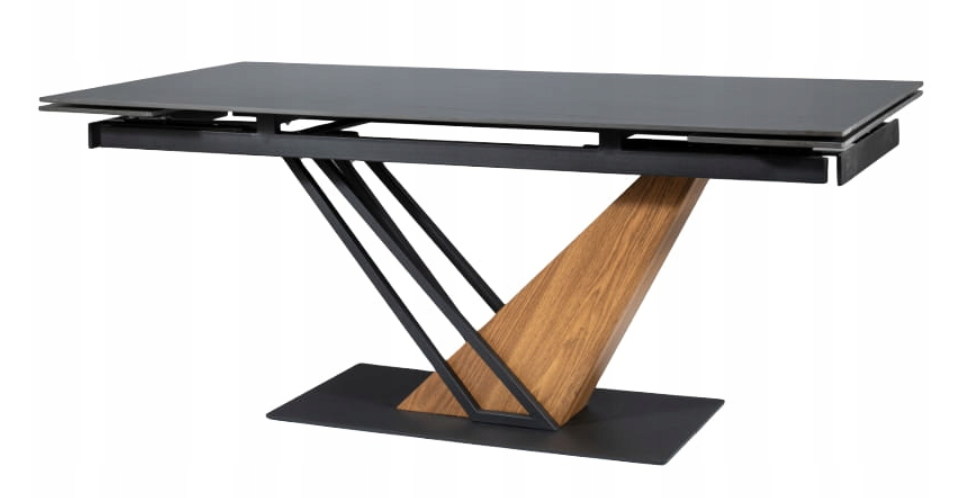 Stół rozkładany 160(220)x90 cm – czarny/drewno, blat ceramiczny z efektem marmuru