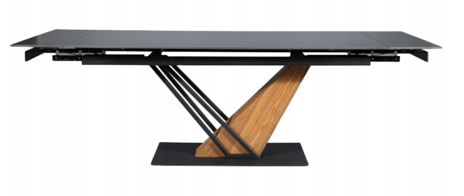 Nowoczesny, funkcjonalny i wyjątkowo stylowy — ten rozkładany stół to idealne rozwiązanie do jadalni, salonu lub kuchni. Elegancki czarny blat z ceramiki z delikatnym motywem marmuru pięknie komponuje się z ciepłym odcieniem drewna i solidnym, metalowym stelażem. To połączenie nowoczesnego designu i trwałości, które zachwyci nawet najbardziej wymagających.
