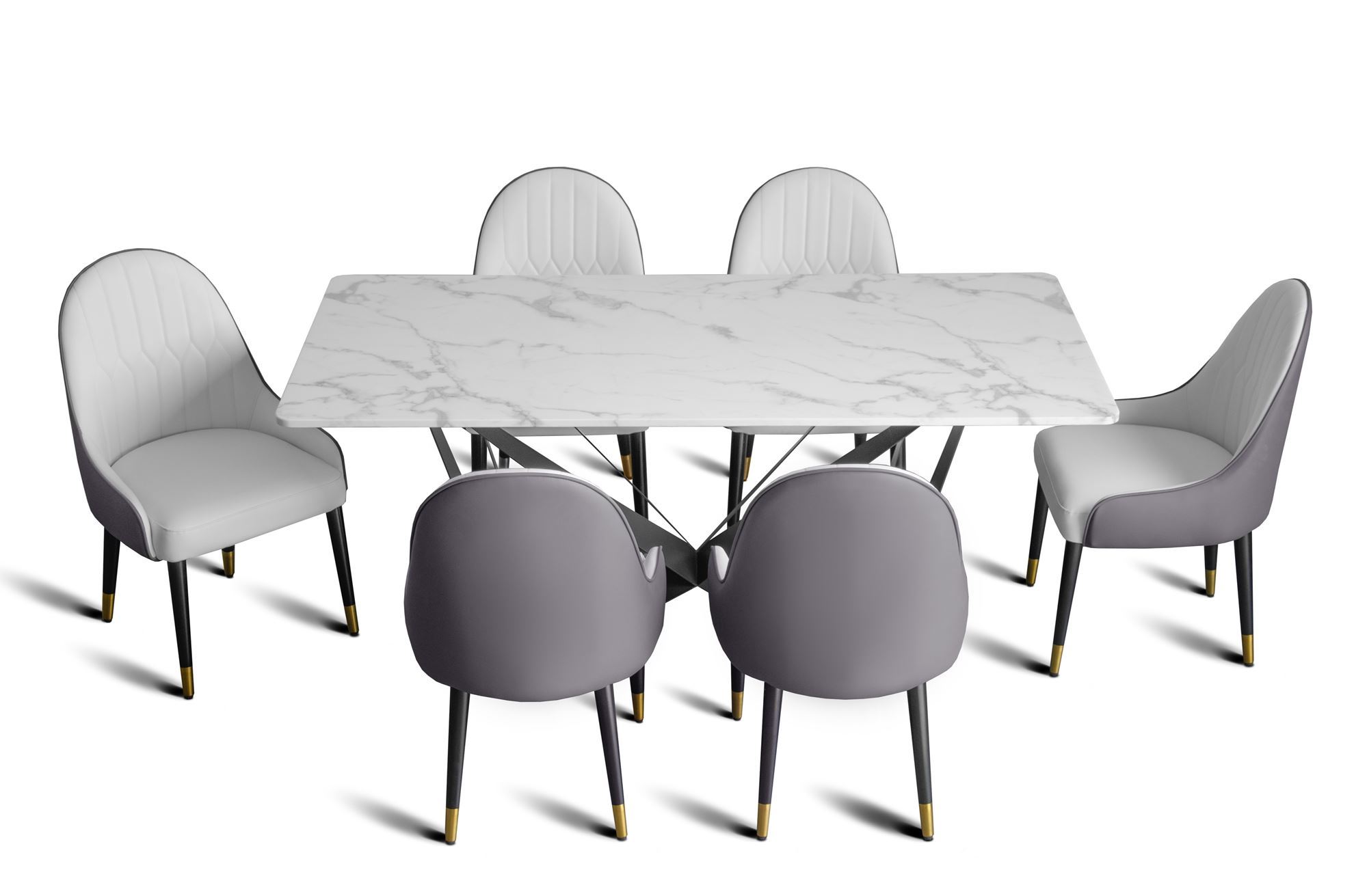 Stół Metz to stylowy mebel o nowoczesnym designie, idealny do każdej jadalni czy salonu. Wykonany ze sztucznego kamienia, zachwyca wyjątkowym połączeniem kolorów: czarno-białych.