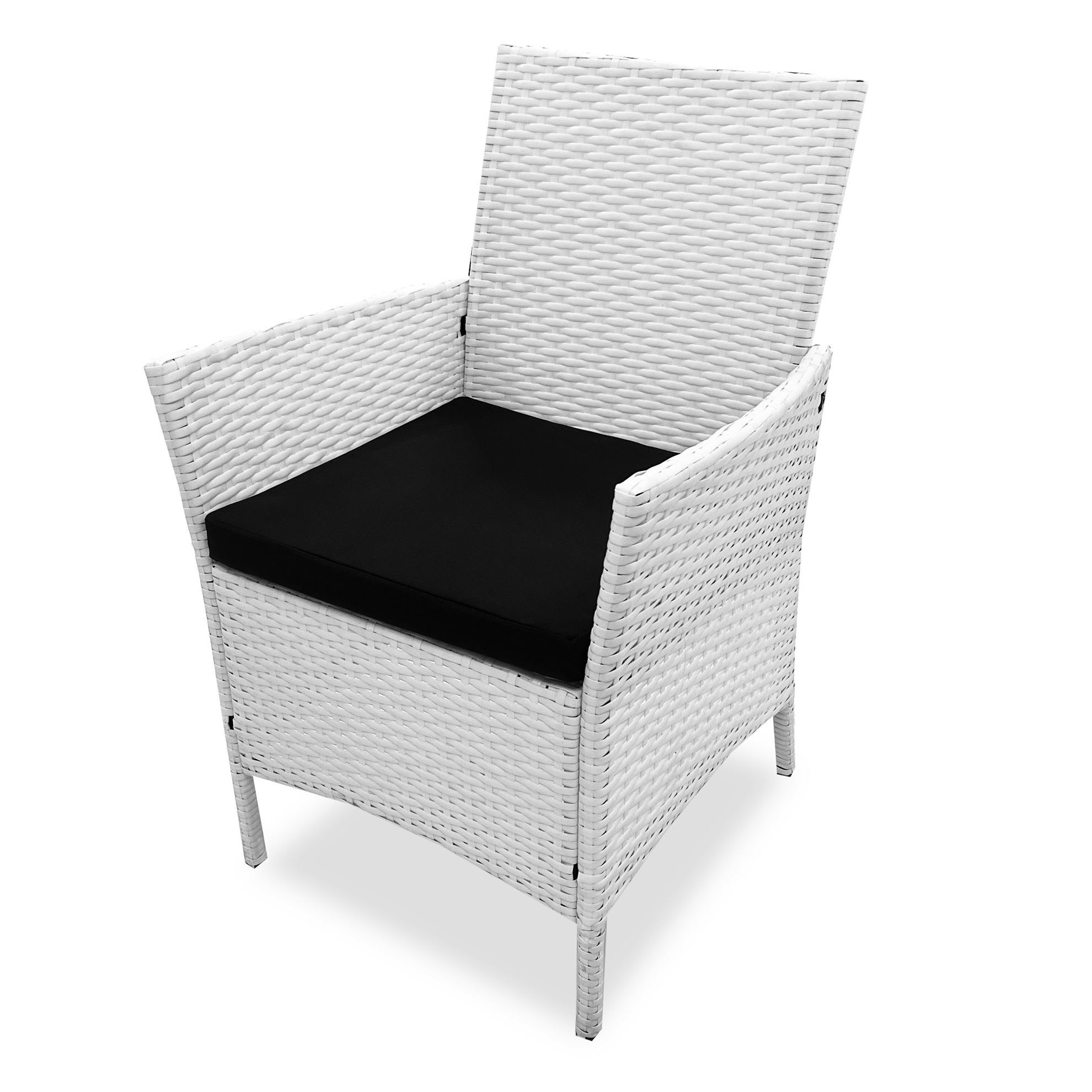 Stylowy zestaw mebli rattanowych stanie się głównym punktem w Twoim ogrodzie, na tarasie lub patio. Ten zestaw jadalniany z rattanu  ma elegancki, nowoczesny design i będzie doskonałym wyborem do posiłków na świeżym powietrzu lub relaksu w ogrodzie. Wykonany z odpornego na warunki atmosferyczne polirattanu komplet jest łatwy do czyszczenia, wytrzymały i odpowiedni do codziennego użytku. Stalowe ramy malowane proszkowo sprawiają, że stół i krzesła są mocne i wytrzymałe.  Dzięki lekkiej konstrukcji meble można łatwo przestawiać. Grube, miękkie, wypełnione gąbką poduszki na siedziska są niezwykle wygodne i wykonane z odpornego na wodę poliestru. Powłoczki mają suwaki, co pozwala na ich zdjęcie i wypranie.