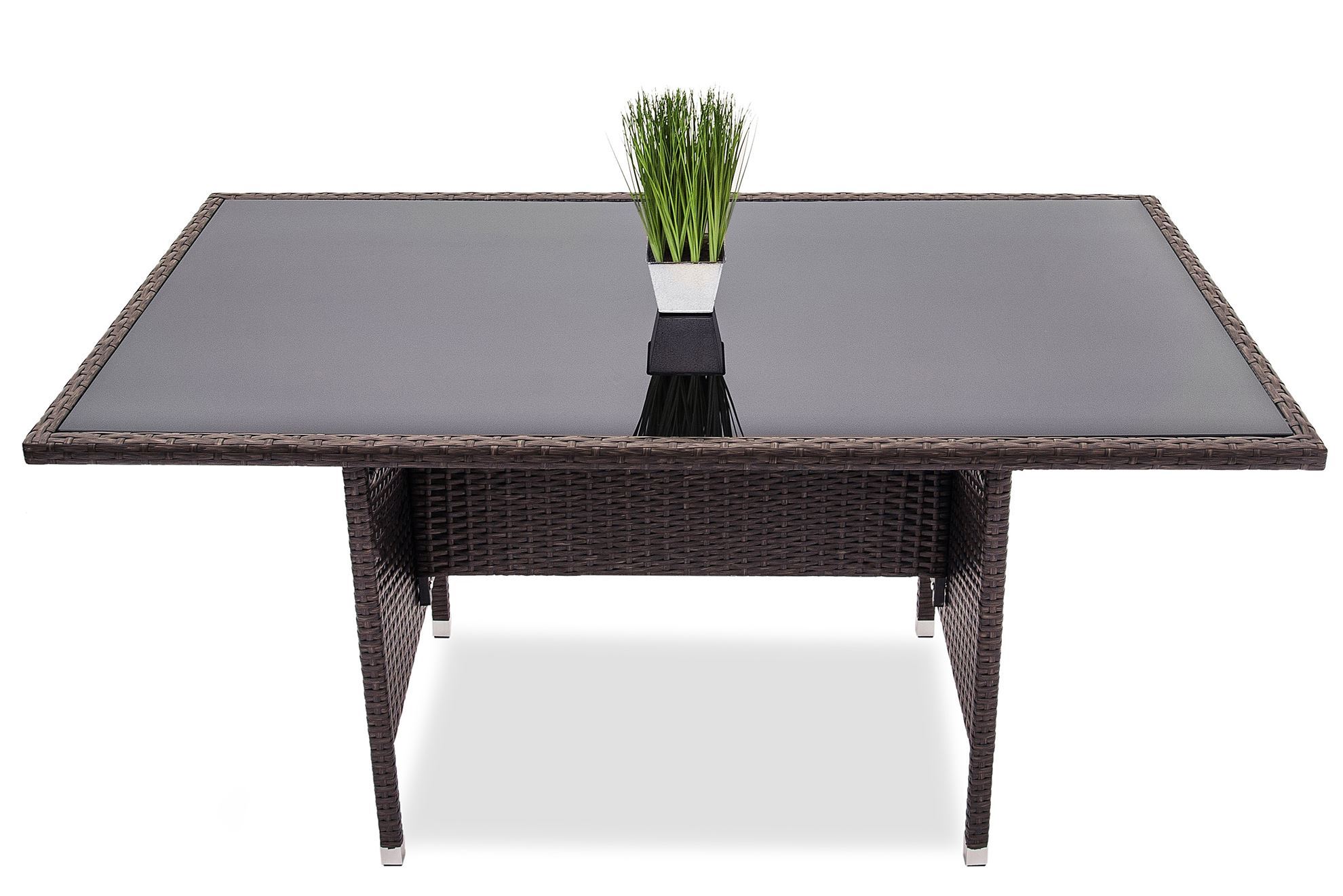 Każdy element posiada stalowe ramy oplecione technorattanem, dzięki czemu zestaw jest odporny na warunki atmosferyczne, a przy tym wygląda elegancko i przytulnie, a także posłuży Ci na długie lata. Blat stołu powstał ze szkła hartowanego o grubości 5 mm. Rattanowe meble ogrodowe- jakość wykonania