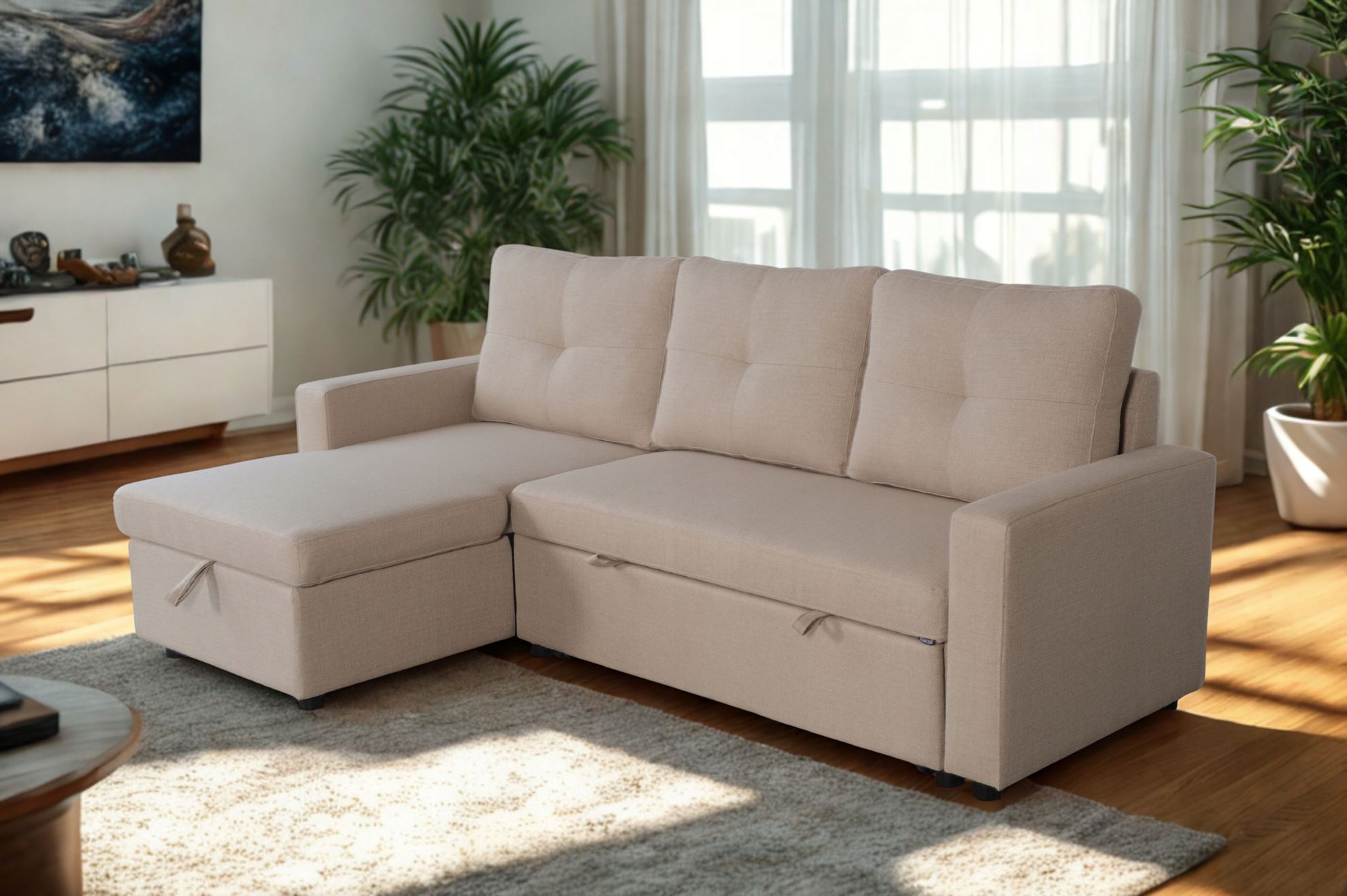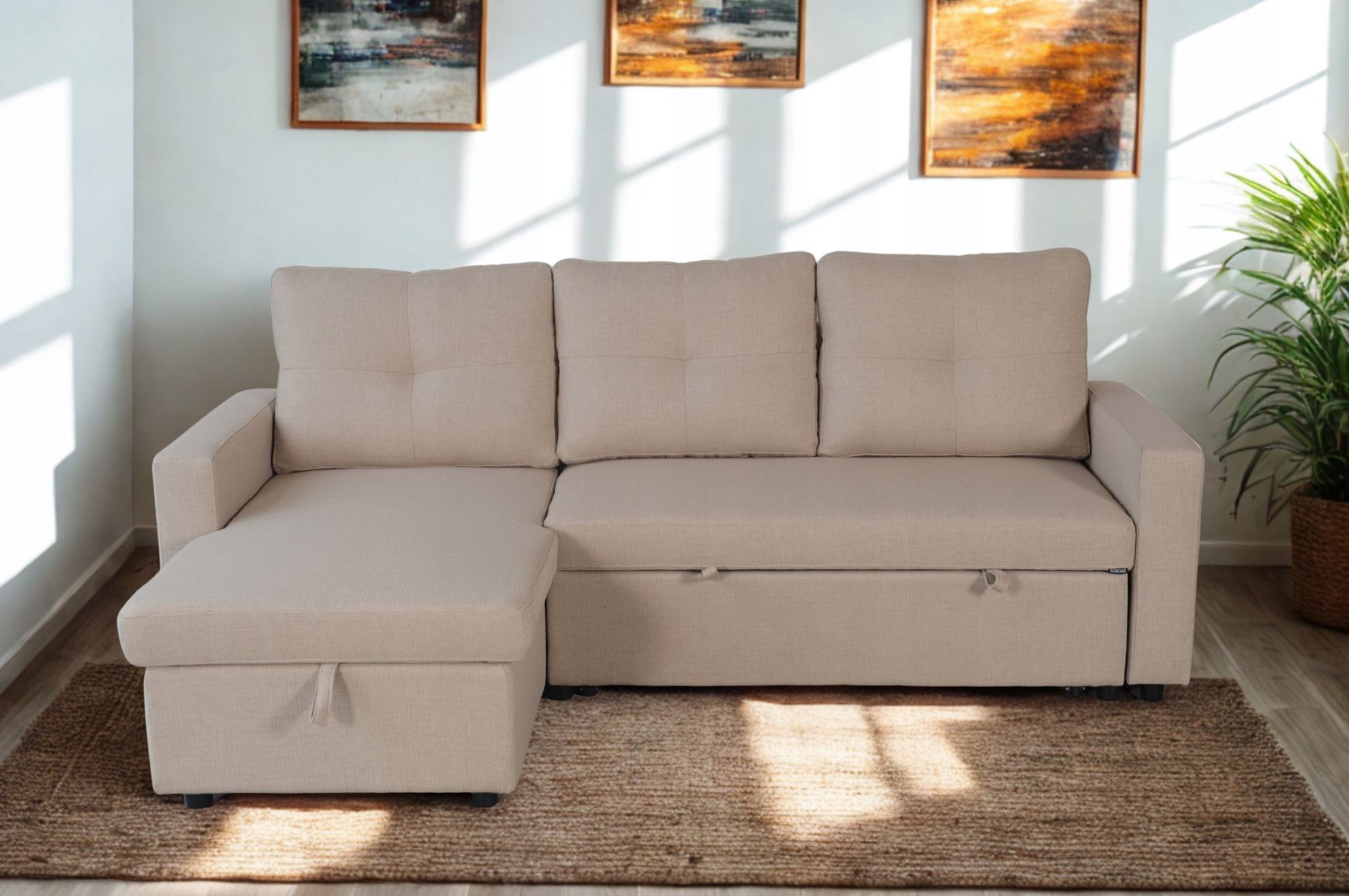 Narożnik z funkcją spania i pojemnikiem LEWY Beżowy