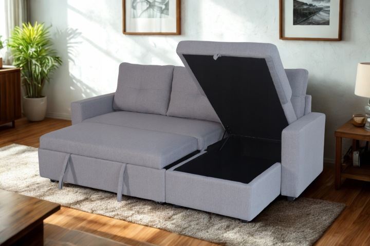 Narożnik z funkcją spania i pojemnikiem PRAWY Szary