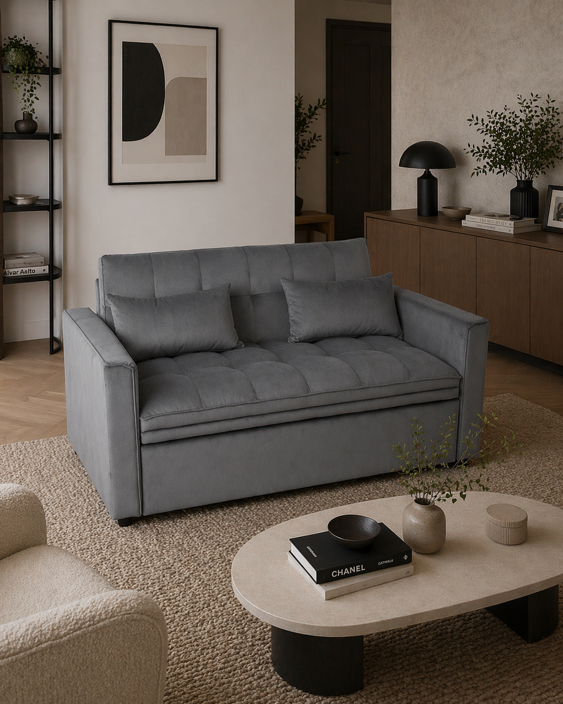 Dzięki funkcji spania kanapa Bari Gray w kilka chwil zamienia się w wygodne łóżko – idealne dla gości, na popołudniowy odpoczynek lub codzienne użytkowanie. To doskonałe połączenie komfortu, funkcjonalności i nowoczesnego designu.
