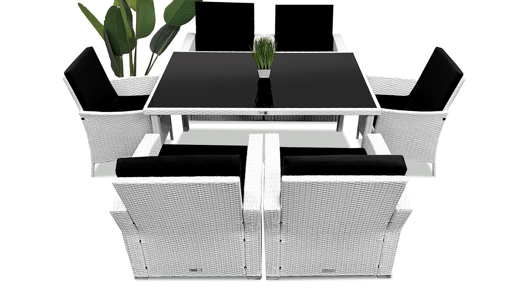 Stylowy zestaw mebli rattanowych stanie się głównym punktem w Twoim ogrodzie, na tarasie lub patio. Ten zestaw jadalniany z rattanu  ma elegancki, nowoczesny design i będzie doskonałym wyborem do posiłków na świeżym powietrzu lub relaksu w ogrodzie. Wykonany z odpornego na warunki atmosferyczne polirattanu komplet jest łatwy do czyszczenia, wytrzymały i odpowiedni do codziennego użytku. Stalowe ramy malowane proszkowo sprawiają, że stół i krzesła są mocne i wytrzymałe.  Dzięki lekkiej konstrukcji meble można łatwo przestawiać. Grube, miękkie, wypełnione gąbką poduszki na siedziska są niezwykle wygodne i wykonane z odpornego na wodę poliestru. Powłoczki mają suwaki, co pozwala na ich zdjęcie i wypranie.