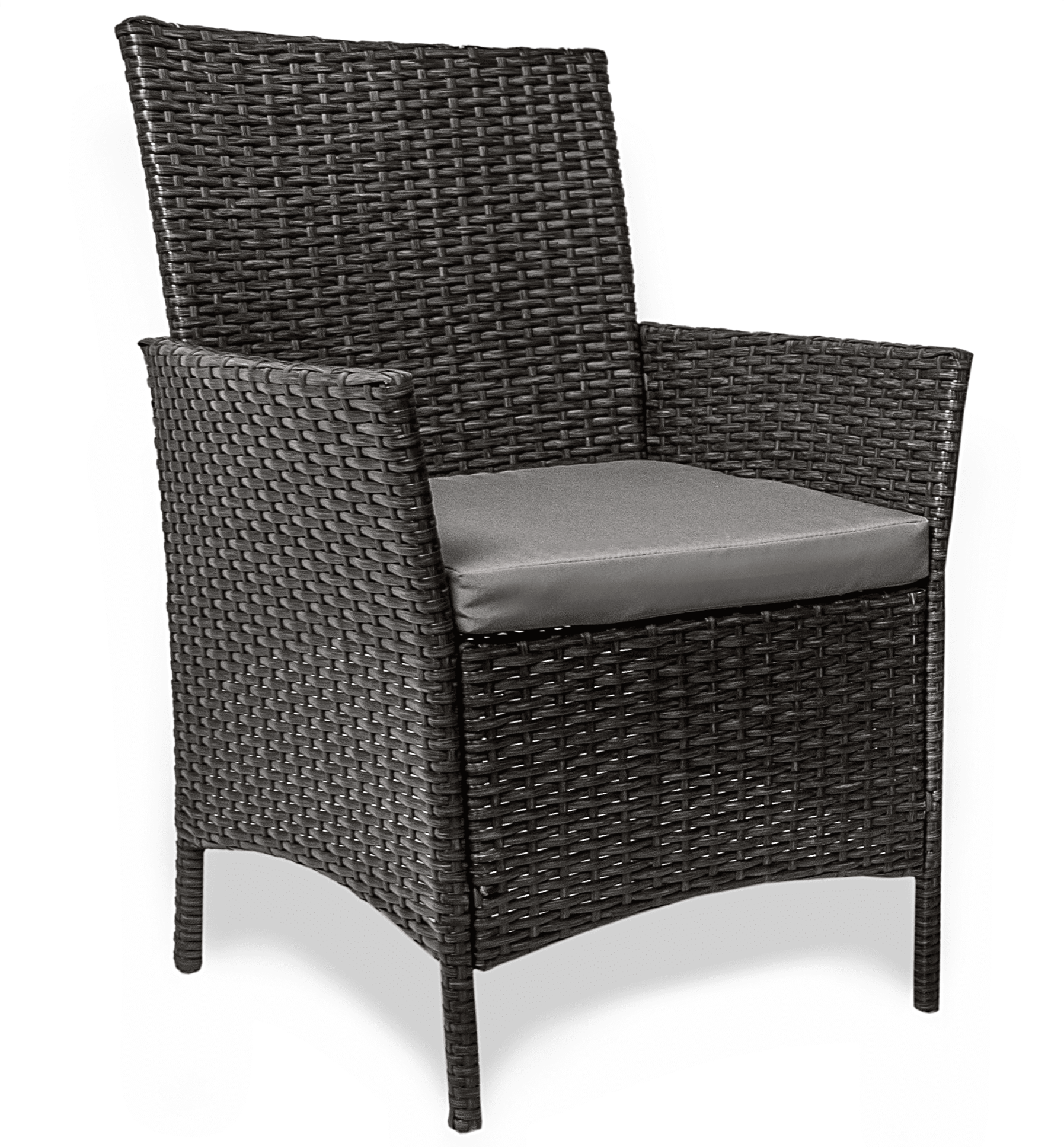 Stylowy zestaw mebli rattanowych stanie się głównym punktem w Twoim ogrodzie, na tarasie lub patio. Ten zestaw jadalniany z rattanu  ma elegancki, nowoczesny design i będzie doskonałym wyborem do posiłków na świeżym powietrzu lub relaksu w ogrodzie. Wykonany z odpornego na warunki atmosferyczne polirattanu komplet jest łatwy do czyszczenia, wytrzymały i odpowiedni do codziennego użytku. Stalowe ramy malowane proszkowo sprawiają, że stół i krzesła są mocne i wytrzymałe.  Dzięki lekkiej konstrukcji meble można łatwo przestawiać. Grube, miękkie, wypełnione gąbką poduszki na siedziska są niezwykle wygodne i wykonane z odpornego na wodę poliestru. Powłoczki mają suwaki, co pozwala na ich zdjęcie i wypranie.
