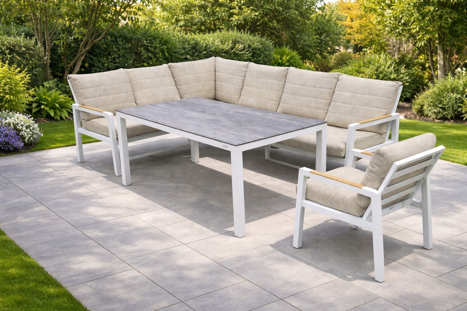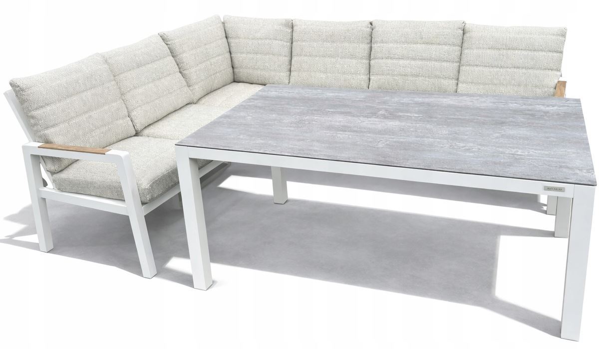 Zestaw mebli aluminiowych od Just Relax: Narożnik Chicago + stół + 1 fotel