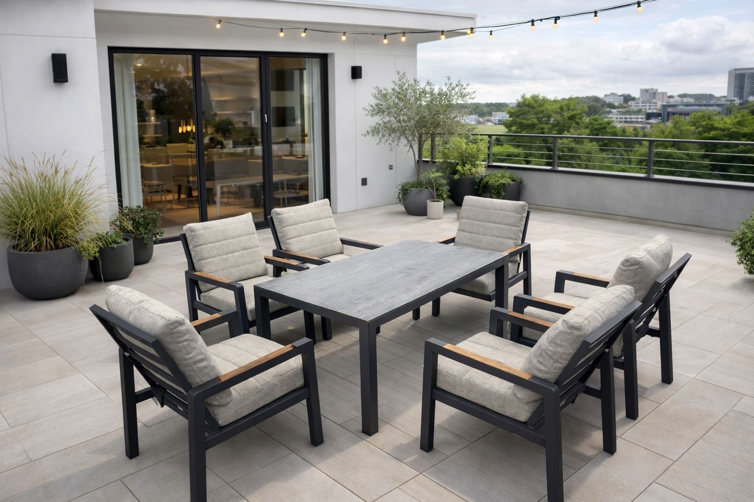 Rama zestawu została wykonana w całości z wysokiej jakości aluminium, które doskonale sprawdza się w warunkach zewnętrznych i gwarantuje długą żywotność mebli.