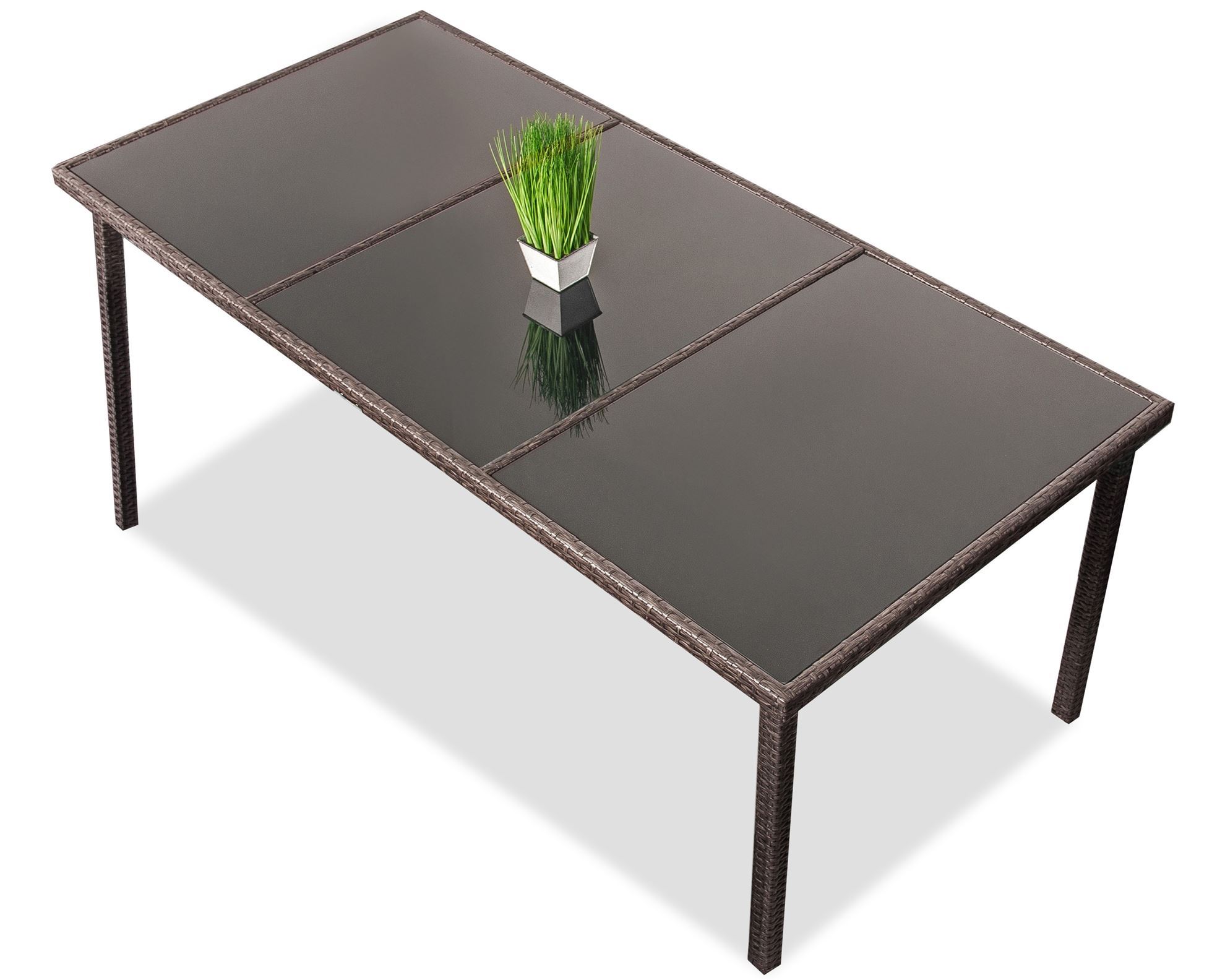 Stylowy zestaw mebli rattanowych stanie się głównym punktem w Twoim ogrodzie, na tarasie lub patio. Ten zestaw jadalniany z rattanu  ma elegancki, nowoczesny design i będzie doskonałym wyborem do posiłków na świeżym powietrzu lub relaksu w ogrodzie. Wykonany z odpornego na warunki atmosferyczne polirattanu komplet jest łatwy do czyszczenia, wytrzymały i odpowiedni do codziennego użytku. Stalowe ramy malowane proszkowo sprawiają, że stół i krzesła są mocne i wytrzymałe.  Dzięki lekkiej konstrukcji meble można łatwo przestawiać. Grube, miękkie, wypełnione gąbką poduszki na siedziska są niezwykle wygodne i wykonane z odpornego na wodę poliestru. Powłoczki mają suwaki, co pozwala na ich zdjęcie i wypranie.