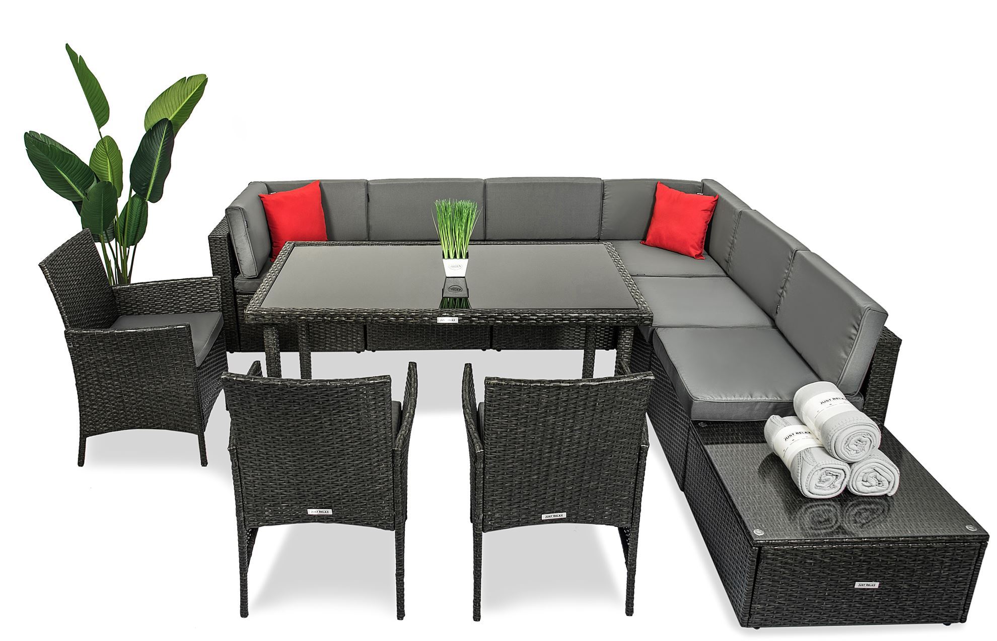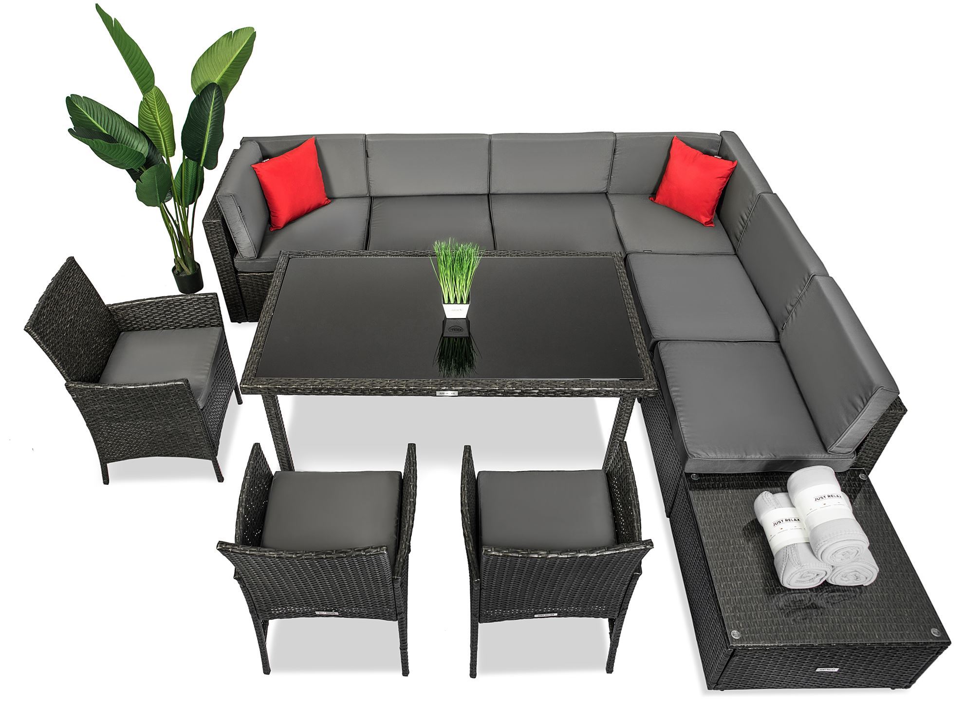 Odkryj Swoje ulubione miejsce na uwodzicielsko miękkim zestawie rattanowym firmy Just Relax. Wspaniałe wzornictwo i extra grube poduszki zachęcają do relaksujących rozmów na wolnym powietrzu. Ten łatwy w pielęgnacji zestaw składa się z modułów, z których w mgnieniu oka stworzysz różne konfiguracje, które idealnie dostosują się do Twoich aktualnych potrzeb i preferencji. Dzięki drobnemu splotowi z trwałego technorattanu oraz wytrzymałej konstrukcji ze stali Twój salon wśród zieleni będzie Ci służył niezawodnie przez długie lata.