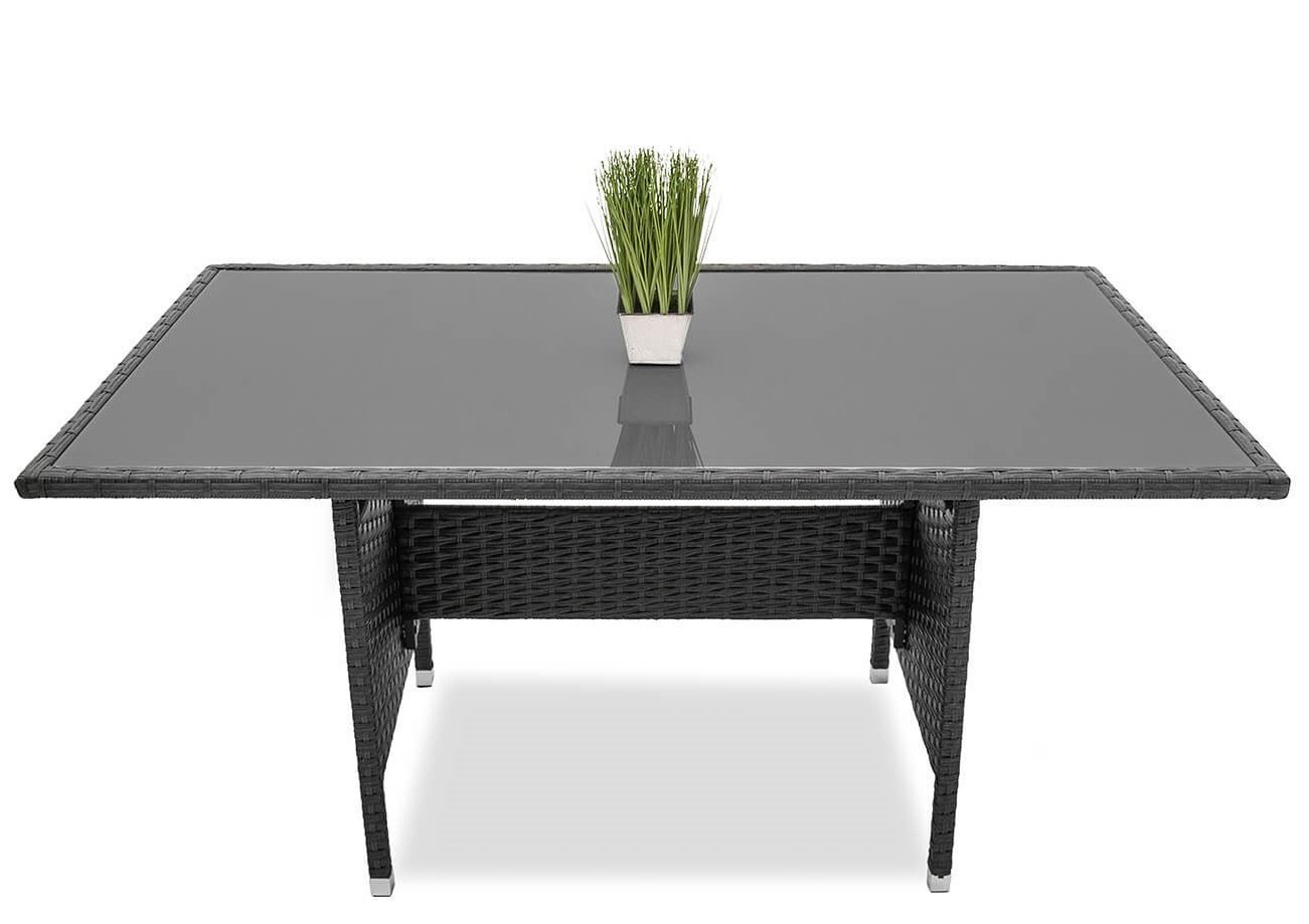 Każdy element posiada stalowe ramy oplecione technorattanem, dzięki czemu zestaw jest odporny na warunki atmosferyczne, a przy tym wygląda elegancko i przytulnie, a także posłuży Ci na długie lata. Blat stołu powstał ze szkła hartowanego o grubości 5 mm. Rattanowe meble ogrodowe- jakość wykonania